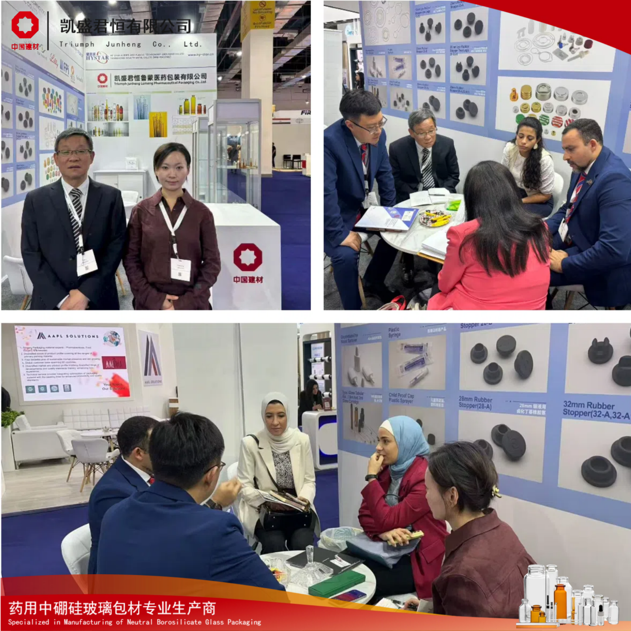 Triumph Junheng Lumeng made its appearance at Pharmaconex 2025, demonstrating the new strength of China's pharmaceutical glass packaging materialsIn September 2025, the Egypt International Pharmaceutical Raw Materials and Pharmaceutical Technology Exhibition ( Pharmaconex 2025 ), the largest and most influential pharmaceutical industry event in theMiddle East, was held at the Cairo International Convention and Exhibition Center. This exhibition brings together more than 350 top pharmaceutical companies in the world, with an exhibition area of more than20,000 square meters, attracting more than 8,500 professional audiences, and becoming a hub platform connecting the global pharmaceutical industry chain. Kaisheng Junheng Lumeng participated in this eventand showed the innovative power of Chinese pharmaceutical glass manufacturing to the global pharmaceutical industry, becoming the focus of the exhibition. |